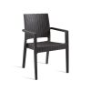 Attractive, virtually indestructible dark grey wicker weave. Stackable to 12 high for easy storage. Frame designed and manufactured so that it will never unravel, rust or decay